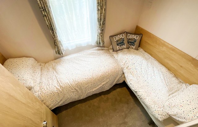 2-bedroom, 6 berth, 12 x 38ft Willerby Skyline. Key Features: Veranda, French doors, Private parking space, Double glazing, Central heating, Full size fridge/freezer, Dishwasher, Washing Machine, En-suite toilet and wash basin to the main bedroom, maximum 6 guests.